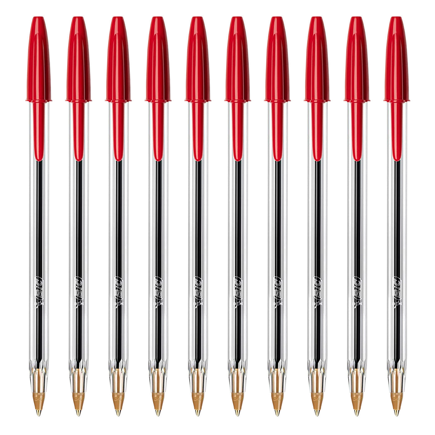 Set de 10 bolígrafos BIC Cristal Original con punta media de 1.0 mm y trazo de 0.4 mm, que se desliza por el papel con suavidad para ofrecer una escritura sin manchas. Diseño eficaz, sencillo y fiable con un cuerpo transparente que permite comprobar en todo momento el nivel de tinta.