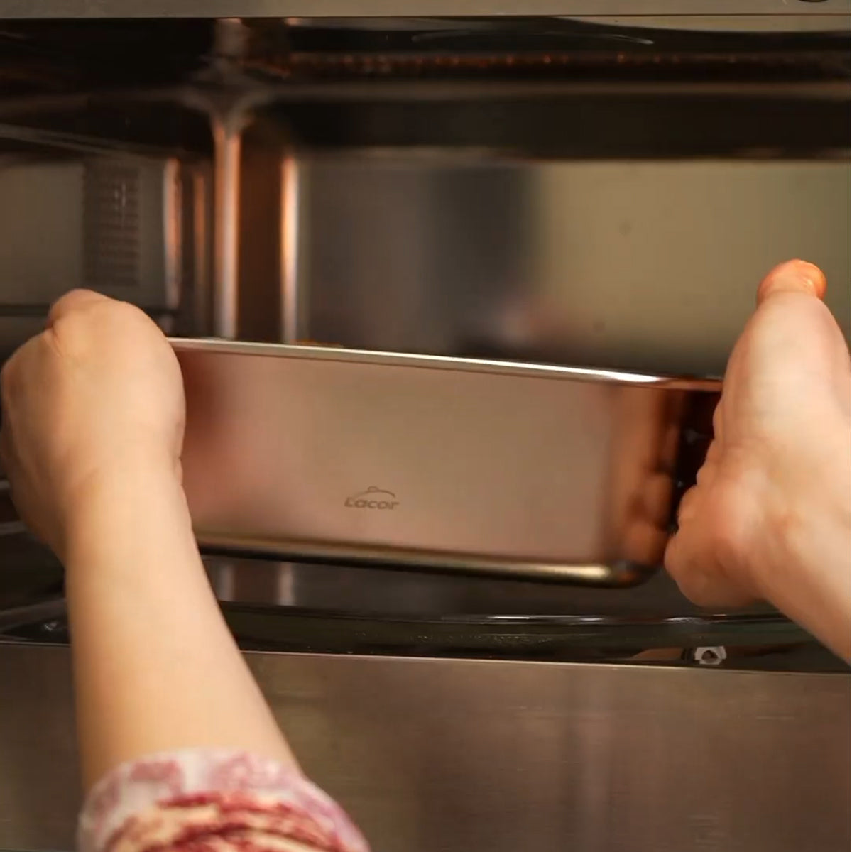 Ecológico, reciclable y libre de BPA. Es apto para lavavajillas, nevera, congelador, horno, freidora de aire y microondas (desde -40ºC hasta 400ºC). Retirar la tapa para calentar en horno, freidora de aire y microondas. Diseñado en España por LACOR con 3 años de garantía.