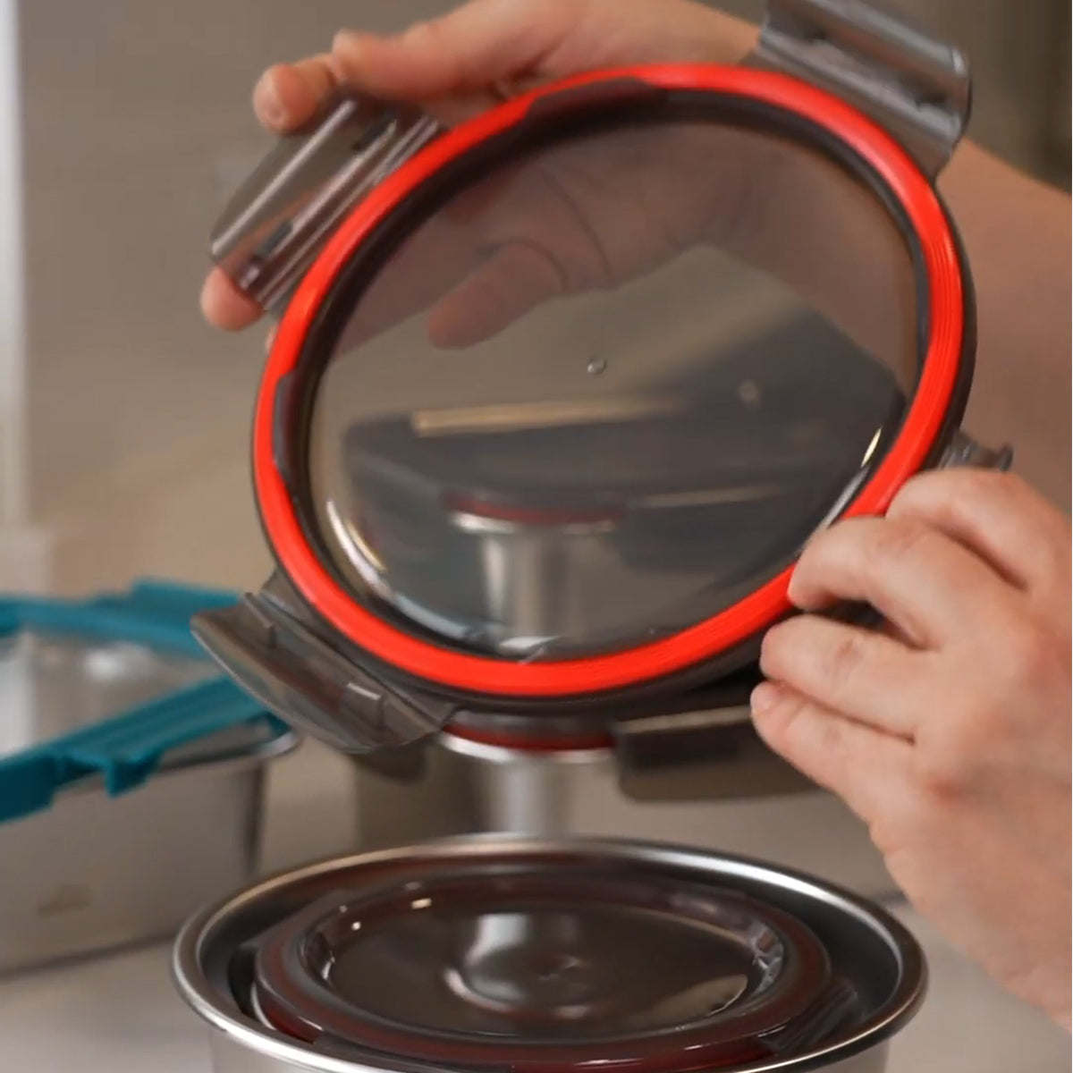 Destaca por su ligereza y resistencia, perfecto para almacenar y para que te lo puedas llevar a cualquier lugar sin preocuparte por el peso. La tapa está fabricada en plástico PP con junta de silicona extraíble y cierre ClipLock System de 4 pestañas completamente 100% hermético.