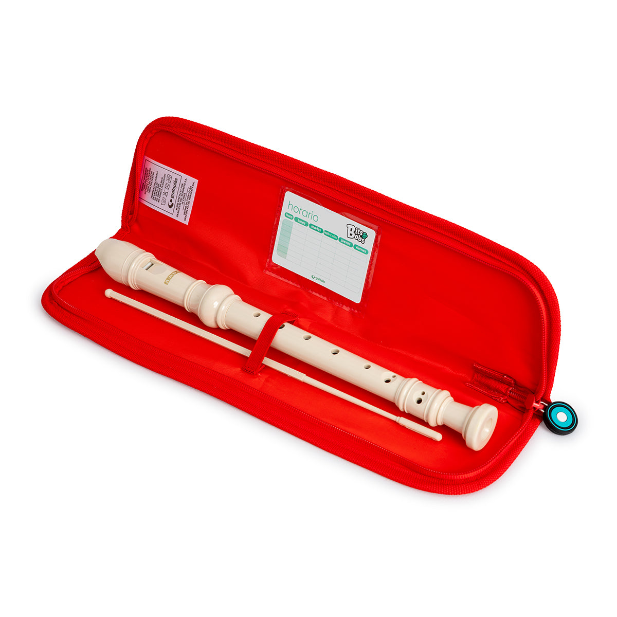 Este portaflautas GRAFOPLAS Bits and Bobs en colores variados mide 37.5 x 9.5 x 3 cm y está diseñado para proteger y organizar tus flautas con comodidad. Cuenta con un bolsillo interior para tarjeta identificativa y una tarjeta con horario para facilitar la planificación. Sus elásticos internos aseguran una sujeción firme, mientras que la cinta en el extremo permite colgarlo o transportarlo fácilmente. Disponible en varios colores, combina funcionalidad y estilo para músicos exigentes.