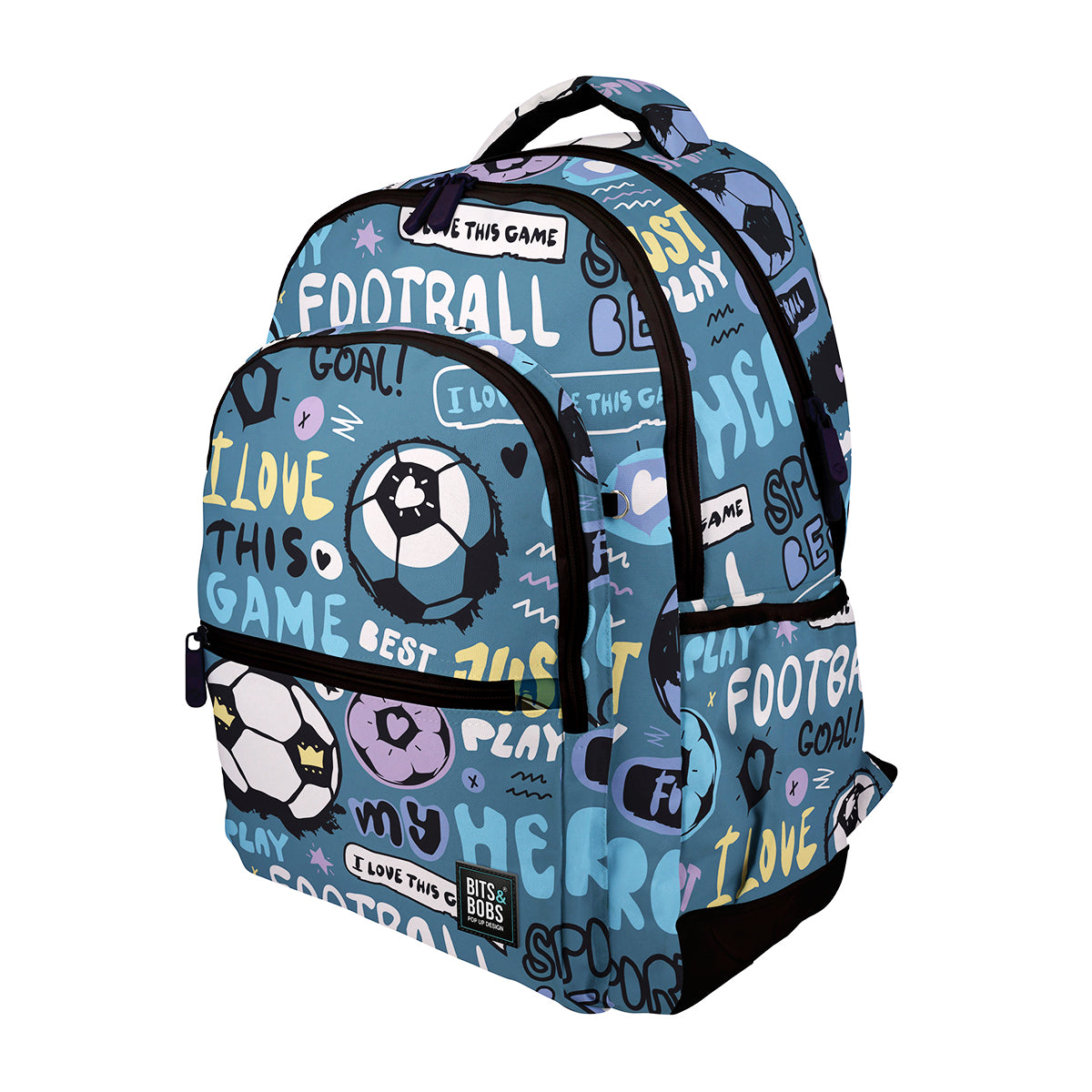 Mochila escolar con tres compartimentos Bits and Bobs modelo Rubber de Grafoplás. Cuenta con un compartimento acolchado para portátil en el interior del compartimento principal, con cierre textil adhesivo. Además, en el mismo espacio, se encuentra un bolsillo interior para el móvil y un bolsillo organizador con llavero extraíble.