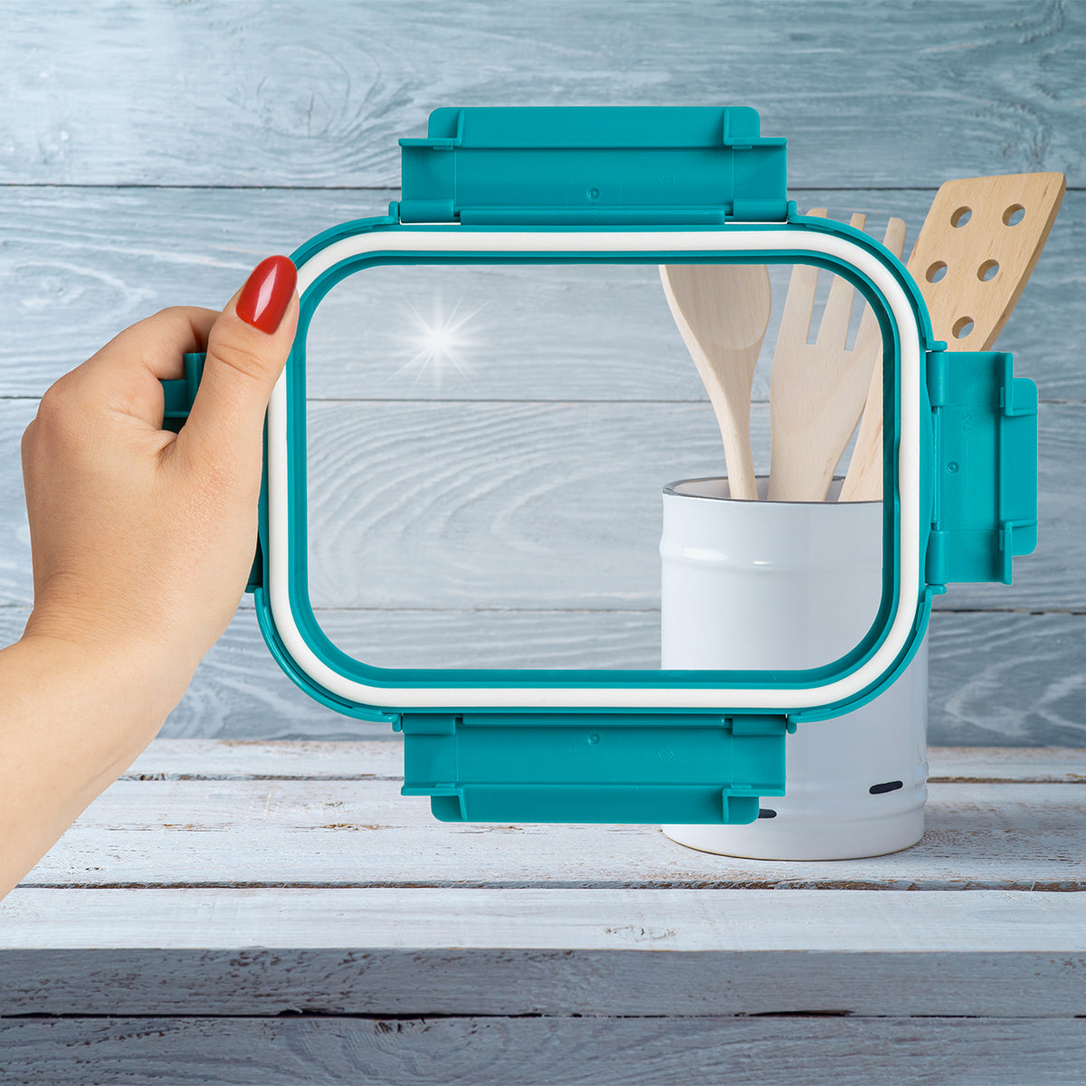 Destaca por su ligereza y resistencia, perfecto para almacenar y para que te lo puedas llevar a cualquier lugar sin preocuparte por el peso. La tapa está fabricada en Plástico SAN/AS (de mejores propiedades que el PP5) con cierre ClipLock System de 4 pestañas completamente 100% hermético. Recipiente especialmente diseñado para el microondas.