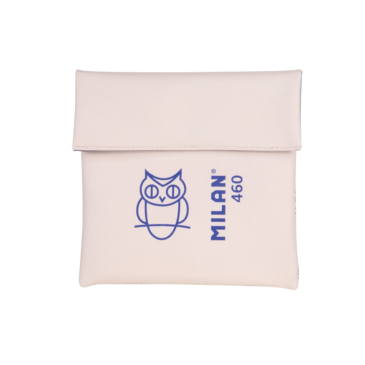 Bolsa isotérmica porta alimentos pequeña tipo sobre de 0.3L en color rosa con estampado de ballenas en color azul marino, de la Colección 460 since 1918, inspirada en los colores y diseño originales de sus gomas de borrar.