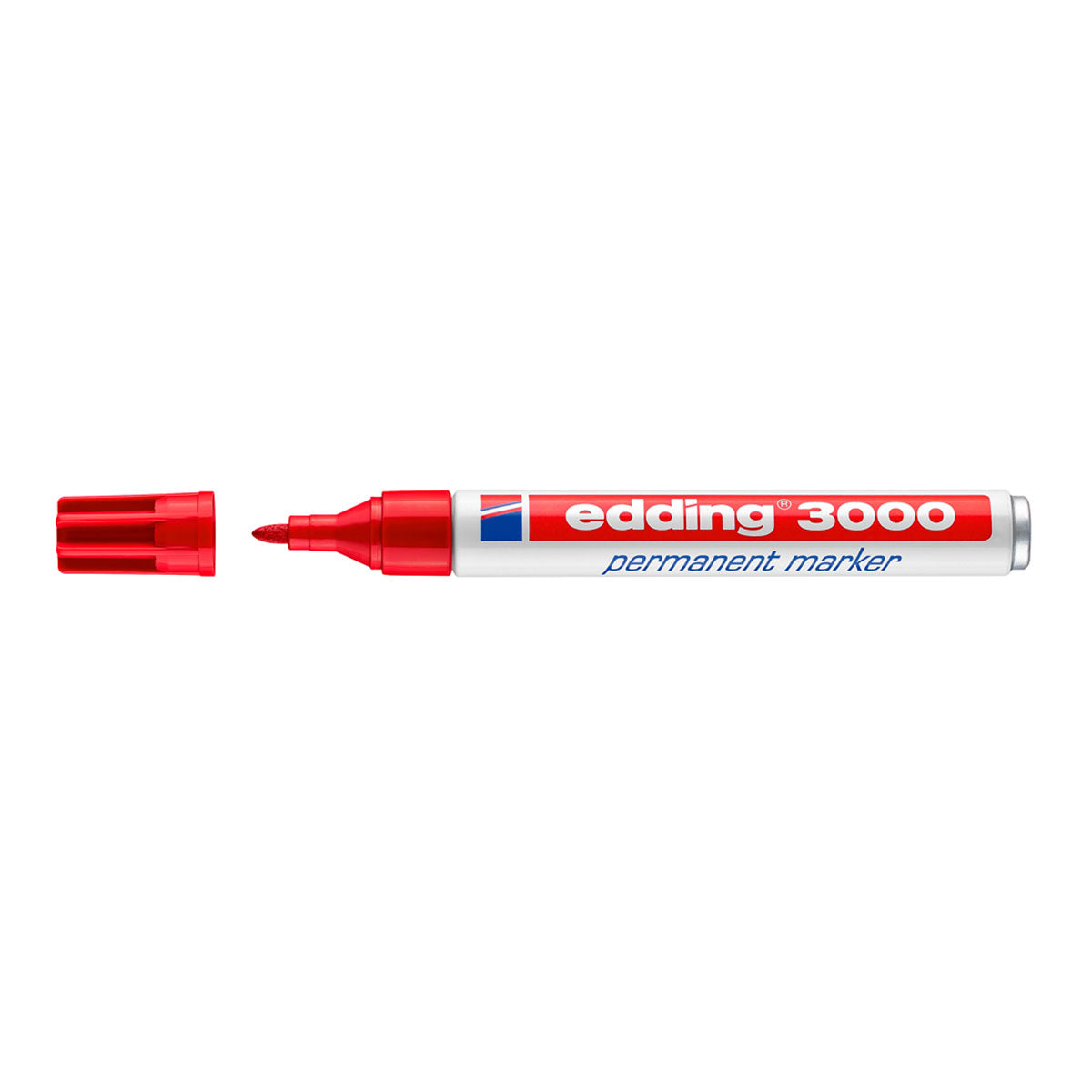 Rotulador permanente Edding 3000, ideal para escribir, marcar y rotular sobre casi cualquier tipo de material, como metal, plástico y vidrio. Trazo de 1.5-3 mm. Es el asistente idóneo para tus tareas diarias que se adapta igual de bien a cualquier cocina, estudio o taller como a tu mano.