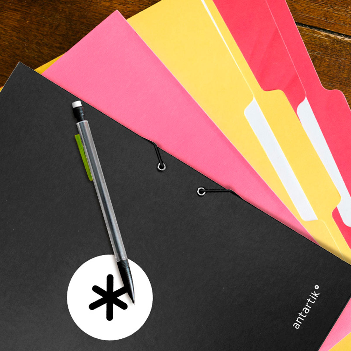 Carpeta de gomas A4 Antartik con tres solapas y cierre de gomas anchas fabricada en cartón forrado de 1.75 mm de espesor, un material rígido y resistente para garantizar que tus documentos, además de ordenados, estén totalmente protegidos y sin riesgo de rotura.