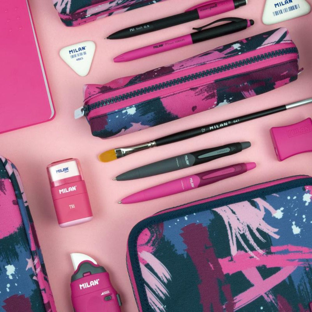 MILAN 081135AGP - Estuche Portatodo 3 Cremalleras, Edición Arty Geo Rosa