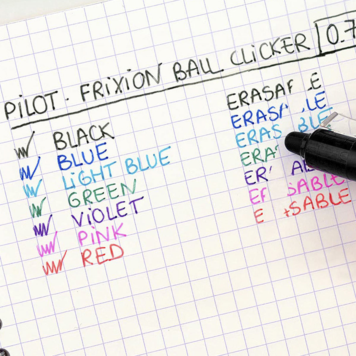 La tinta desaparece con un único y novedoso sistema de fricción. Se puede escribir, borrar y volver a escribir tantas veces como sea necesario. No mancha, no daña el papel y tampoco deja restos.