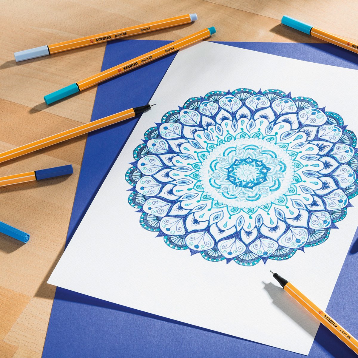 El STABILO point 88 es el rotulador punta fina perfecto para crear notas, con una escritura ordenada, subrayando, creando pequeños bocetos y está disponible en 47 colores. Tiene la punta de fibra con refuerzo metálico y es apto para su uso con reglas y plantillas. No se seca si se deja sin tapón durante largos periodos. Tapón ventilado. Ancho de trazo: 0.4 mm.