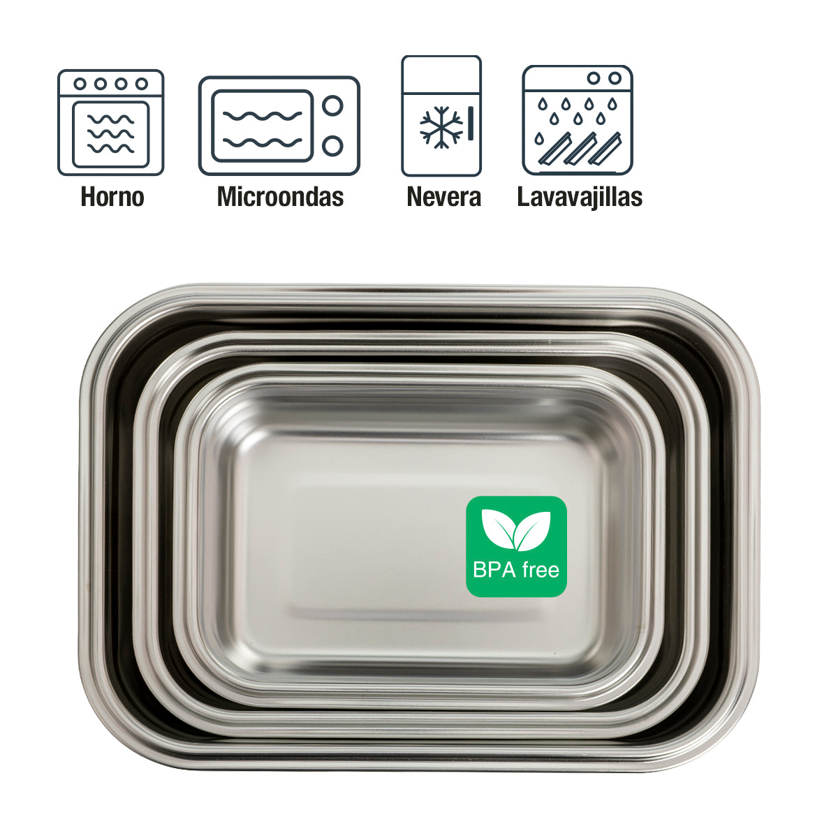 Ecológico, reciclable y libre de BPA. Es apto para lavavajillas, nevera, congelador, horno, freidora de aire y microondas (desde -40ºC hasta 400ºC). Retirar la tapa para calentar en horno, freidora de aire y microondas. Diseñado en España por IBILI con 3 años de garantía.