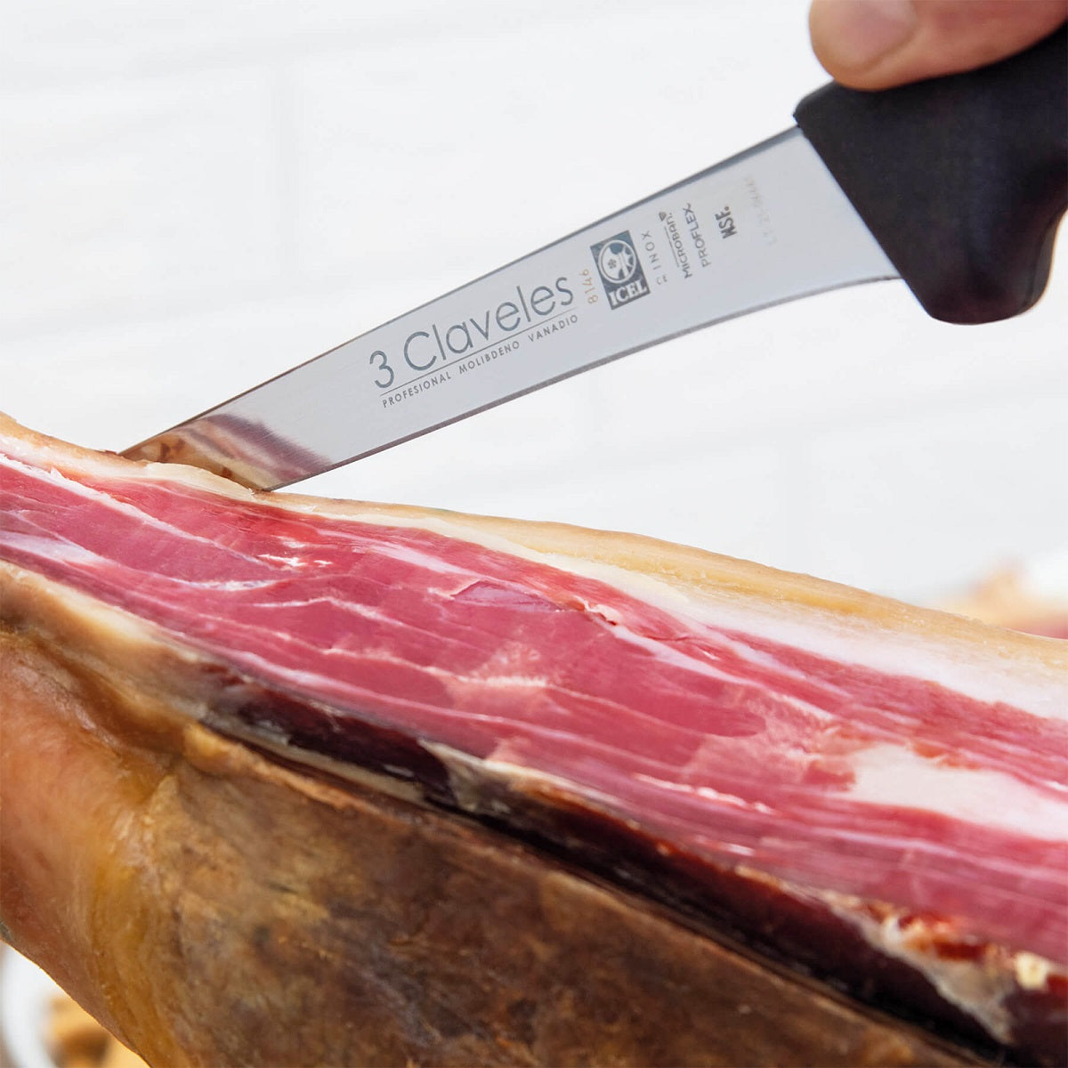 3 Claveles POM - Kit Profesional de Cuchillo Jamonero con Deshuesador y Pinzas