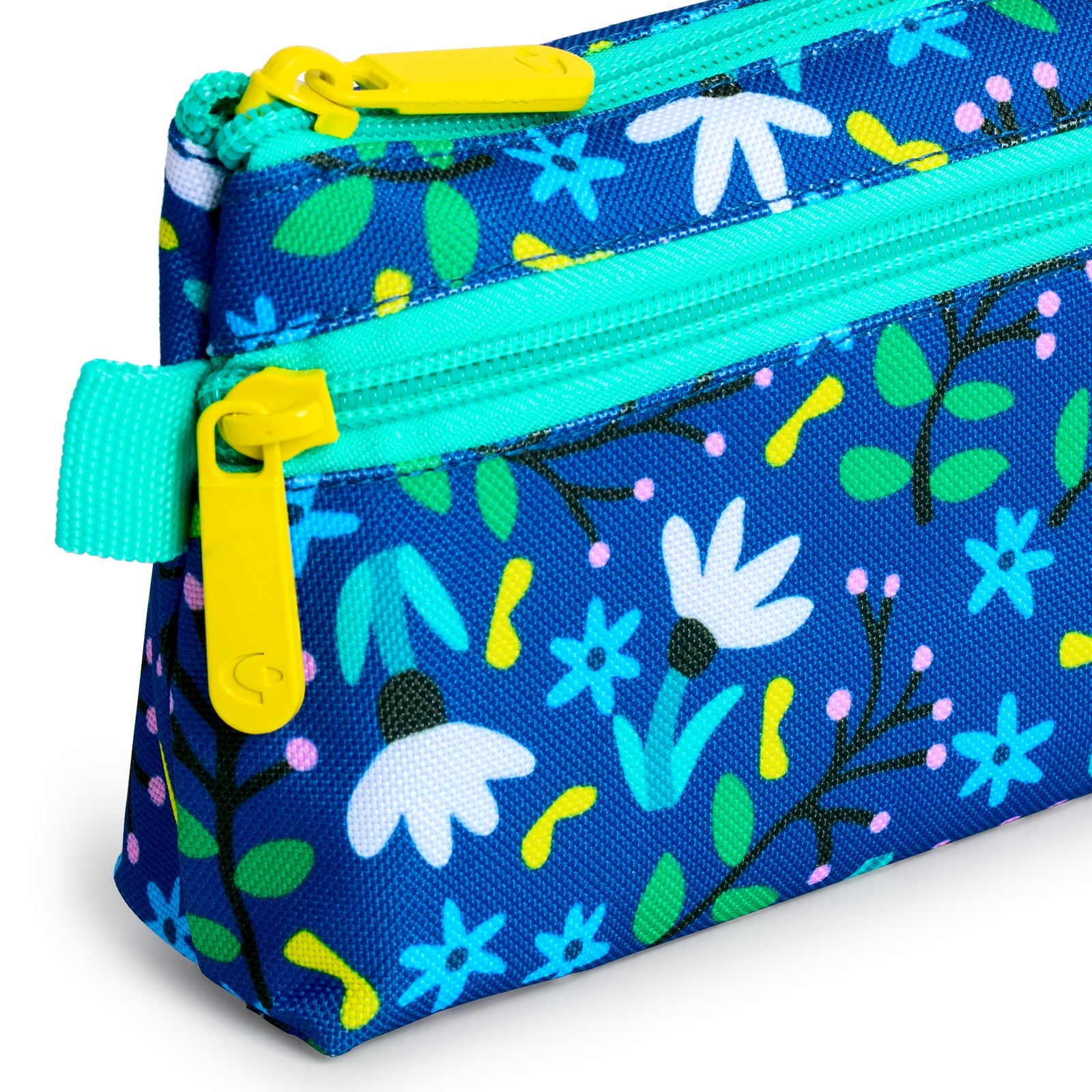 Grafoplás - Estuche Portatodo Plano con 2 Cremalleras de Fácil Apertura. Blue Garden