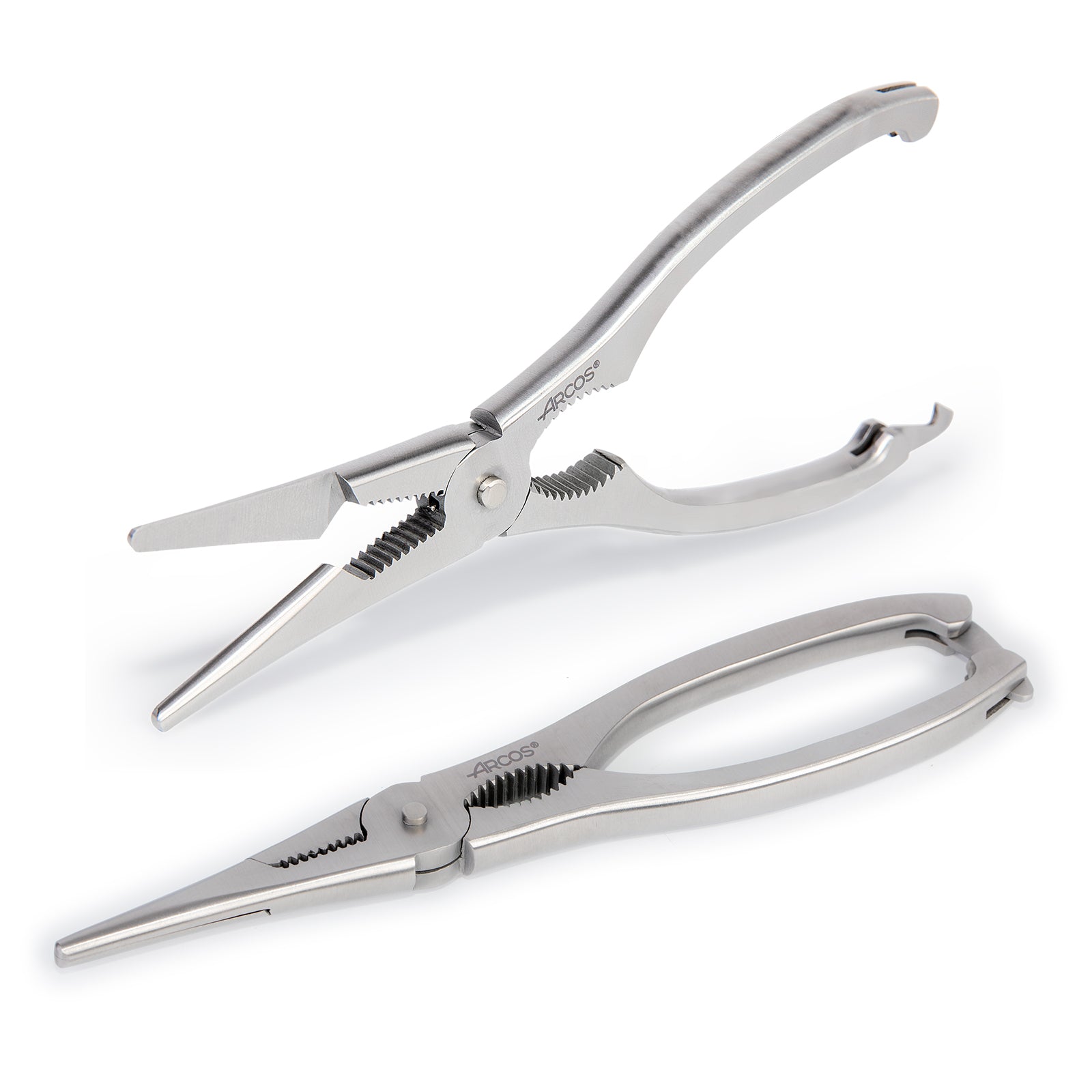 Juego de 2 Tenazas corta marisco ARCOS profesional con muelle de 18.5 cm en acero inoxidable forjado. Dispone de un cierre en la base para guardarlo sin riesgo de corte.