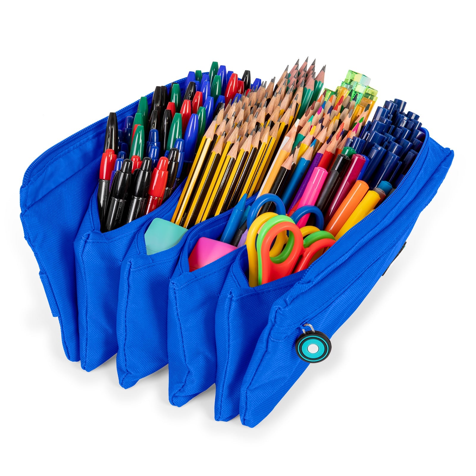 ColePack Eco36 - Estuche Cuadruple de 4 Cremalleras con Material Escolar Incluido. Azul