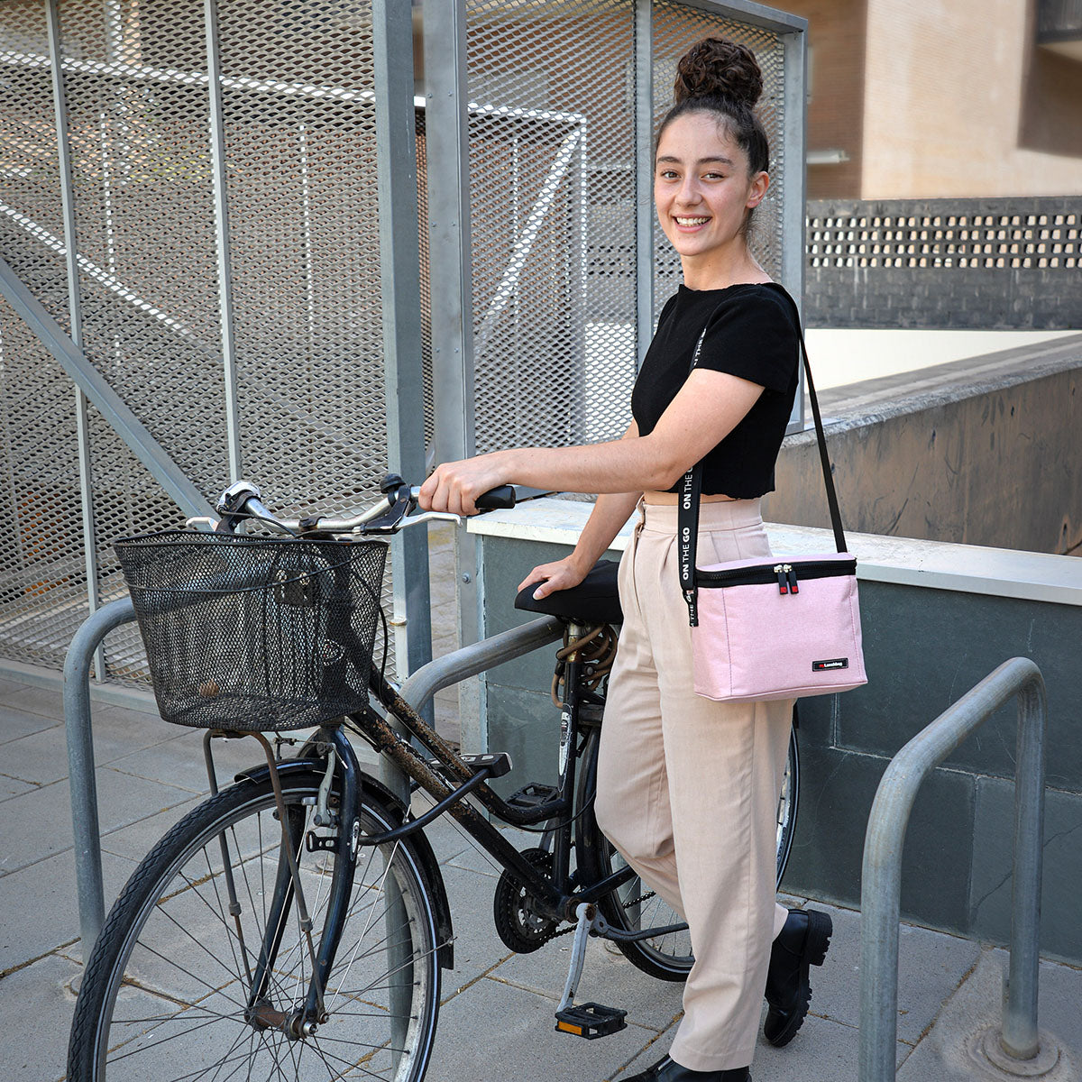 Con el uso de enfriadores, se pueden lograr hasta 8 horas de eficiencia térmica en frío. Dispone de cinta regulable y estampada, un diseño muy en tendencia. Se recomienda lavar con un paño húmedo.