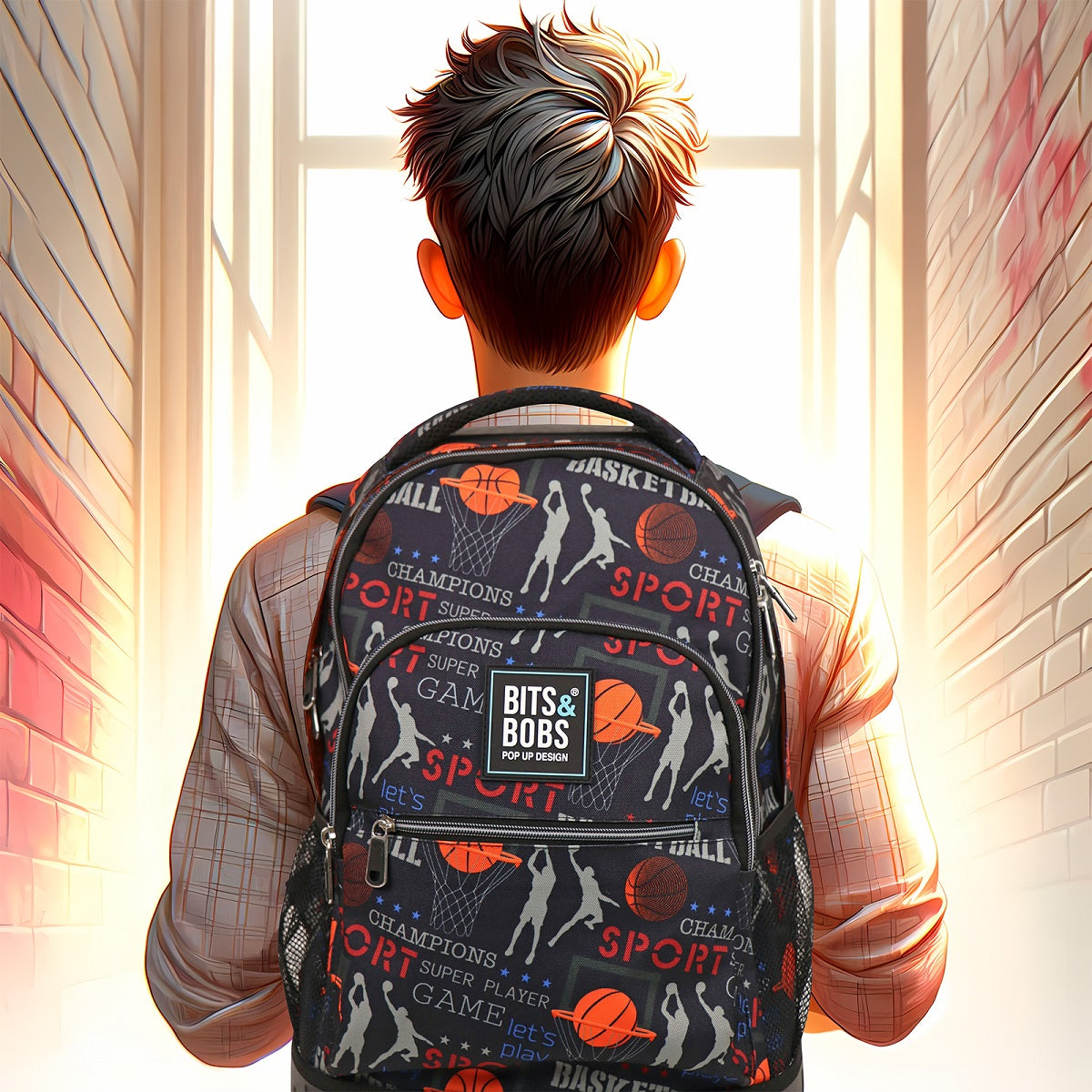 Además de los dos compartimientos principales, cuenta con un bolsillo frontal multiusos con organizador, un bolsillo pequeño frontal de acceso rápido y dos bolsillos laterales con rejilla y goma elástica, para tener a tu alcance la merienda y la cantimplora.