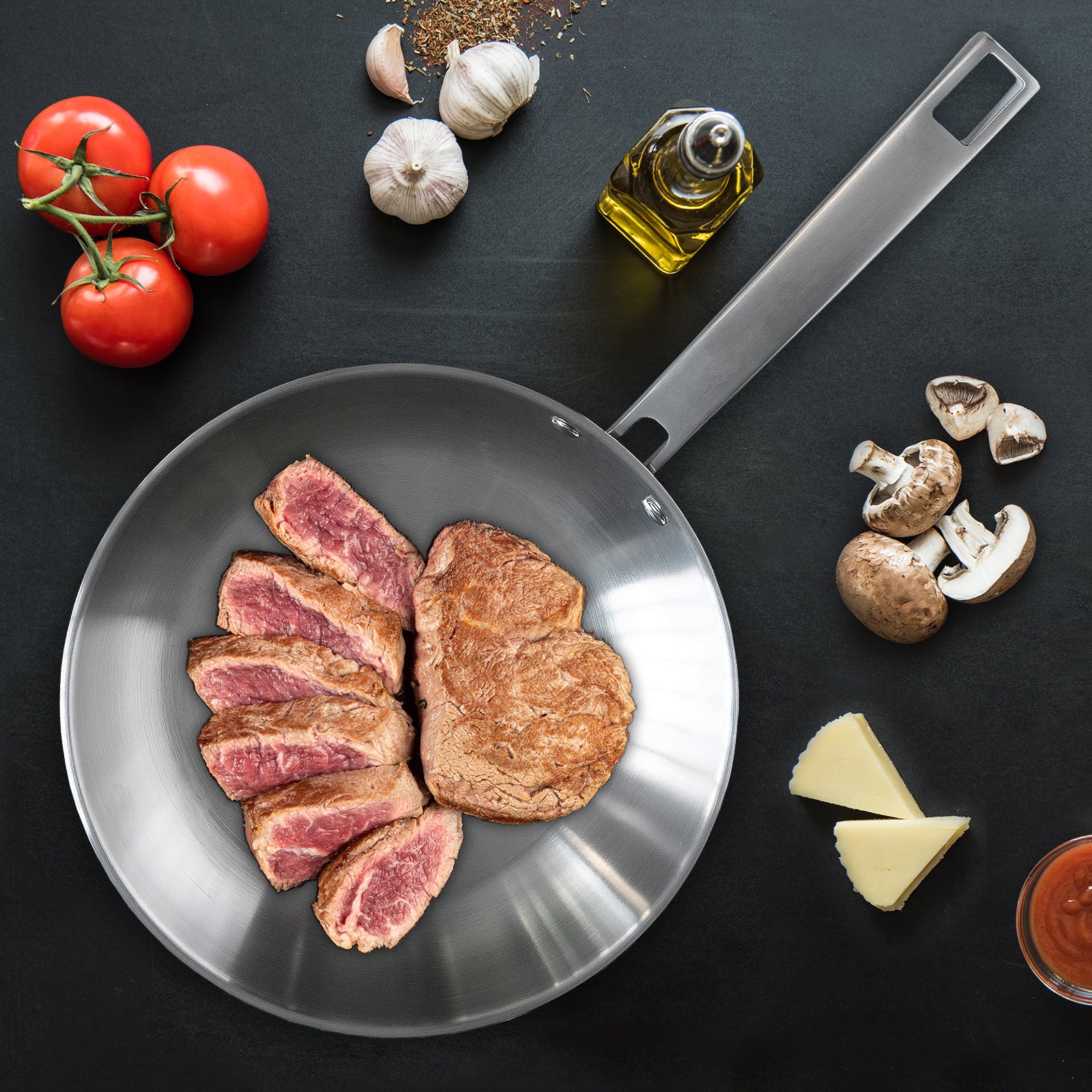 Mango ergonómico fabricado en acero inoxidable fundido. Es una sartén que manejarás con comodidad y con la que podrás preparar todo tipo de recetas. Al calentarse rápidamente, los alimentos quedan sellados a la perfección.