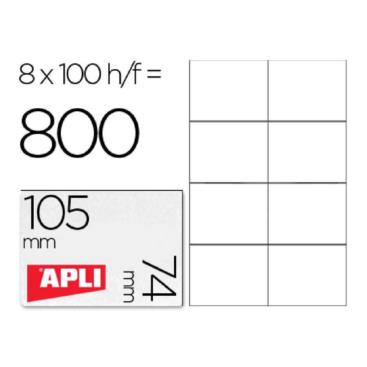 APLI - Etiqueta Adhesiva Apli 1279 Tamano 105x74 mm Para Fotocopiadora Laser Ink-Jet Caja Con 100 Hojas Din A4