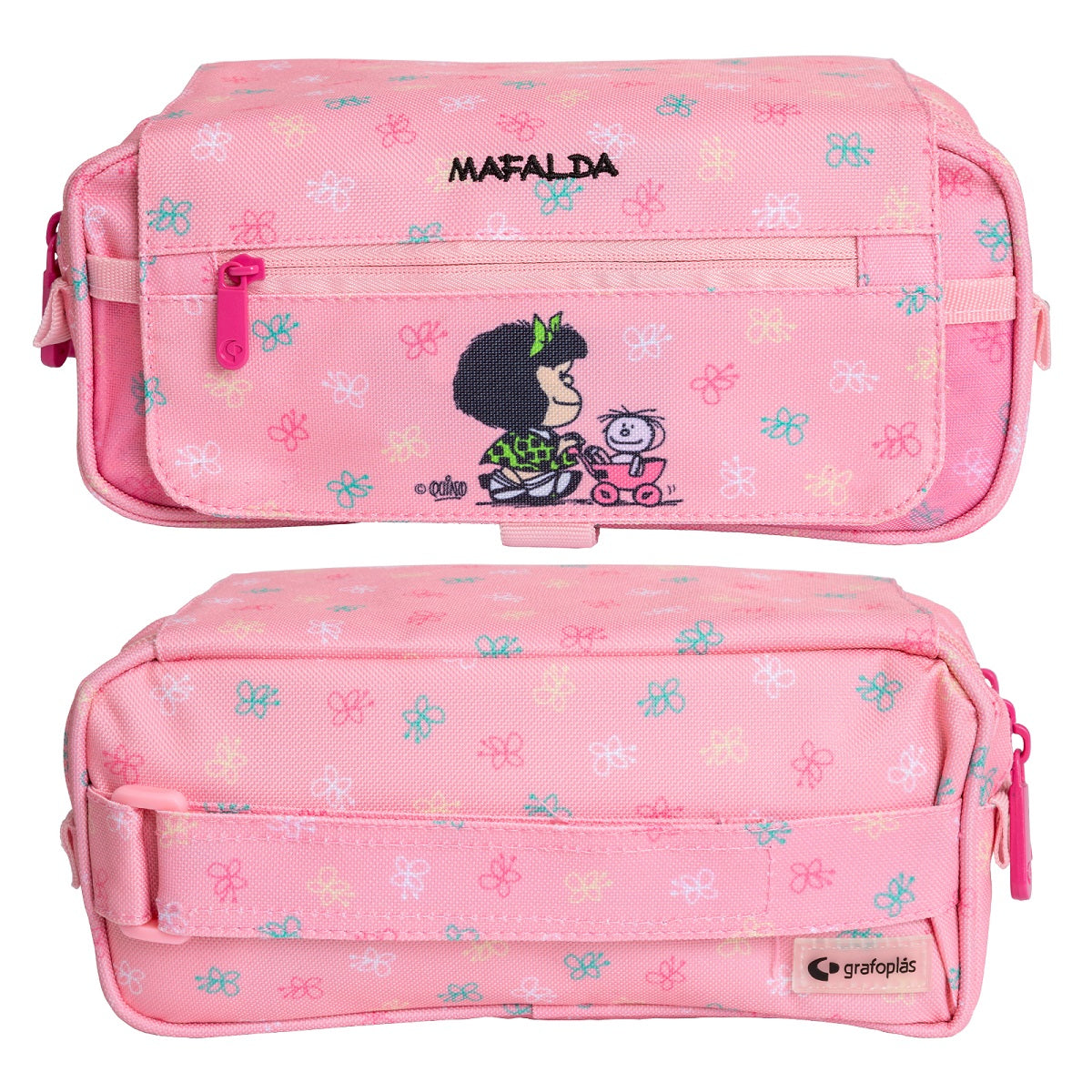 El estuche se caracteriza por tener 3 compartimentos de cremallera, un bolsillo exterior y uno frontal de malla. Además dispone de una solapa con tirador de tela, un bolsillito con una tarjeta para el nombre y una cinta para acoplarlo al carro. Perfecto para mantener todo el material ordenado y bien compartimentado. Fabricado 100% en Poliéster. Medidas: 23 x 10 x 10 cm.