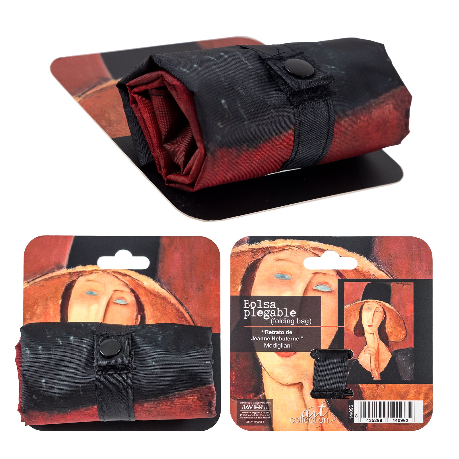 Bolsa plegable y reutilizable de la colección Modigliani de Javier. Al tener un tamaño reducido cuando está plegada, es ideal para llevarla siempre contigo a cualquier lugar: a la compra, en el coche, en el bolso, etc. y ¡dar un toque de color a tus días!