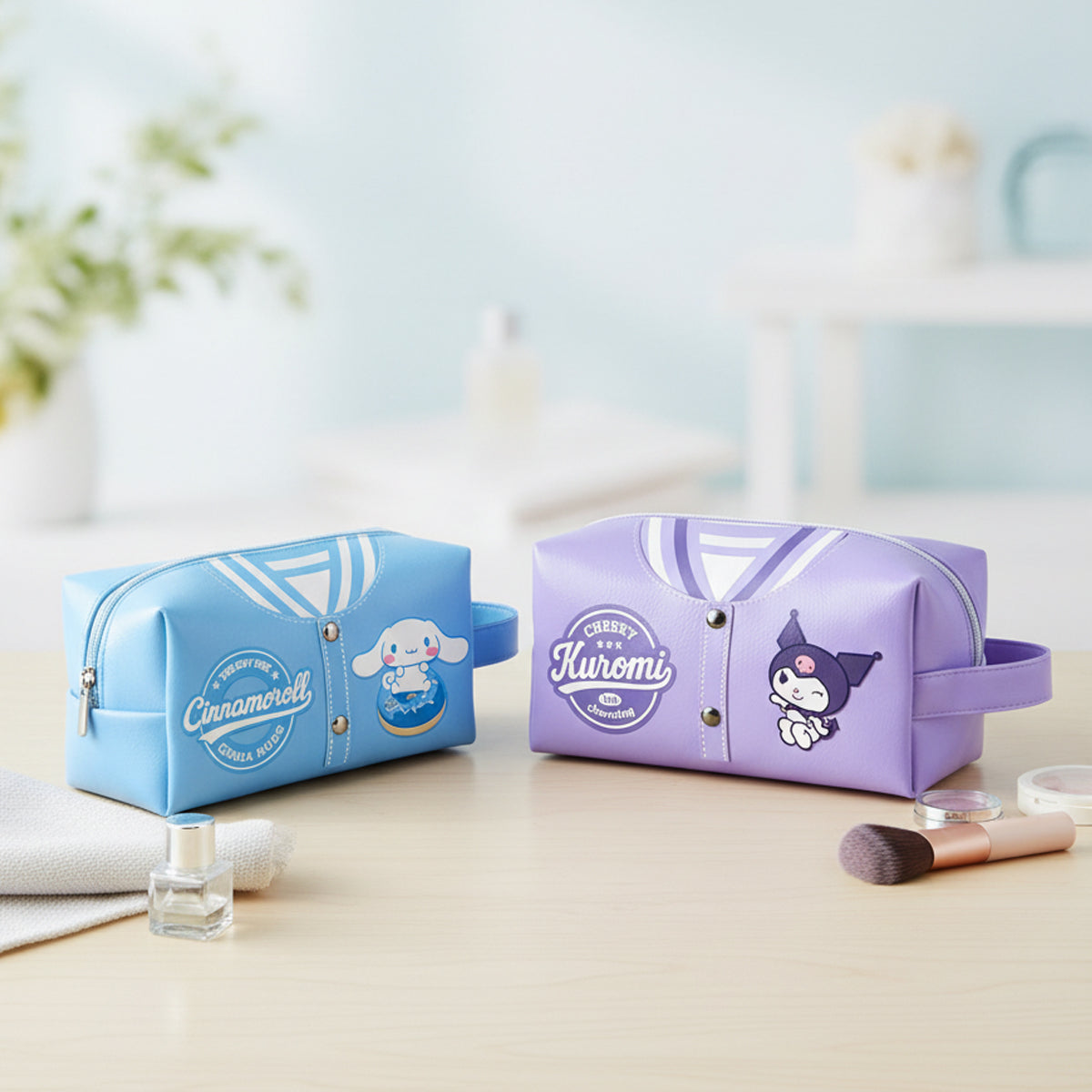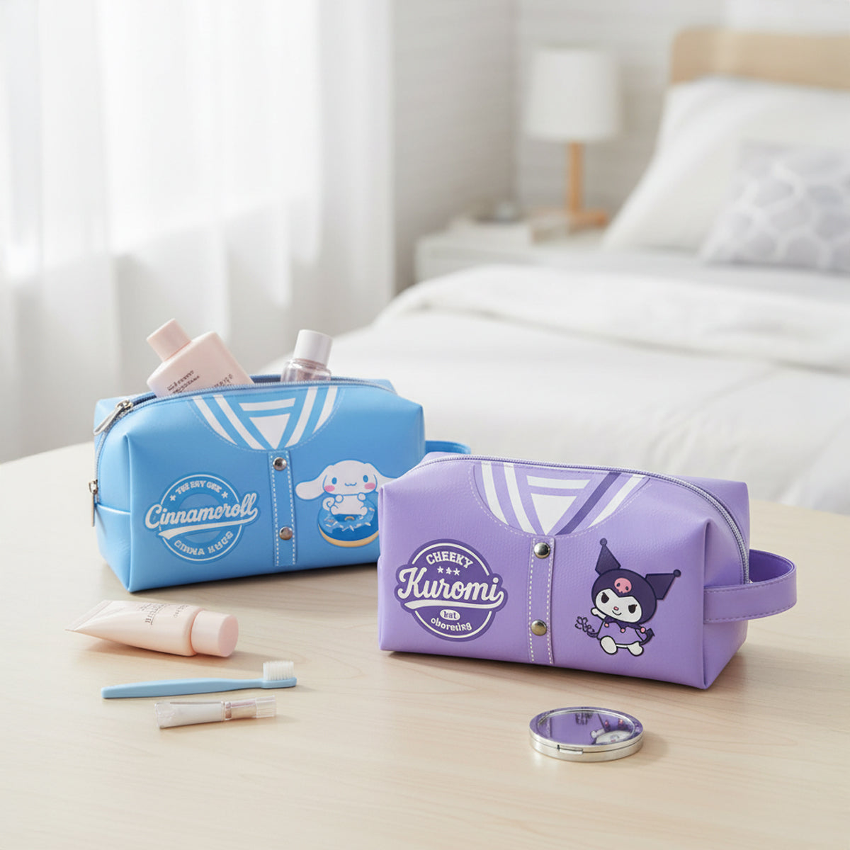 Neceser Brick Plus de KARACTERMANIA Hello Kitty Kuromi Varsity, espacioso y resistente para llevar tus pertenencias. Posee una asa trasera para llevarlo cómodamente en el trolley.