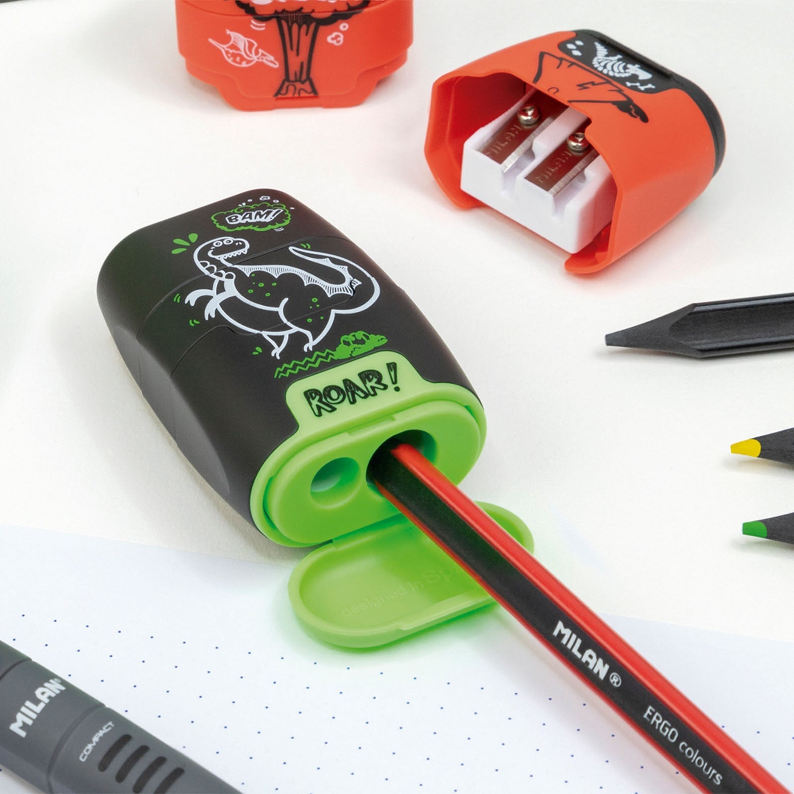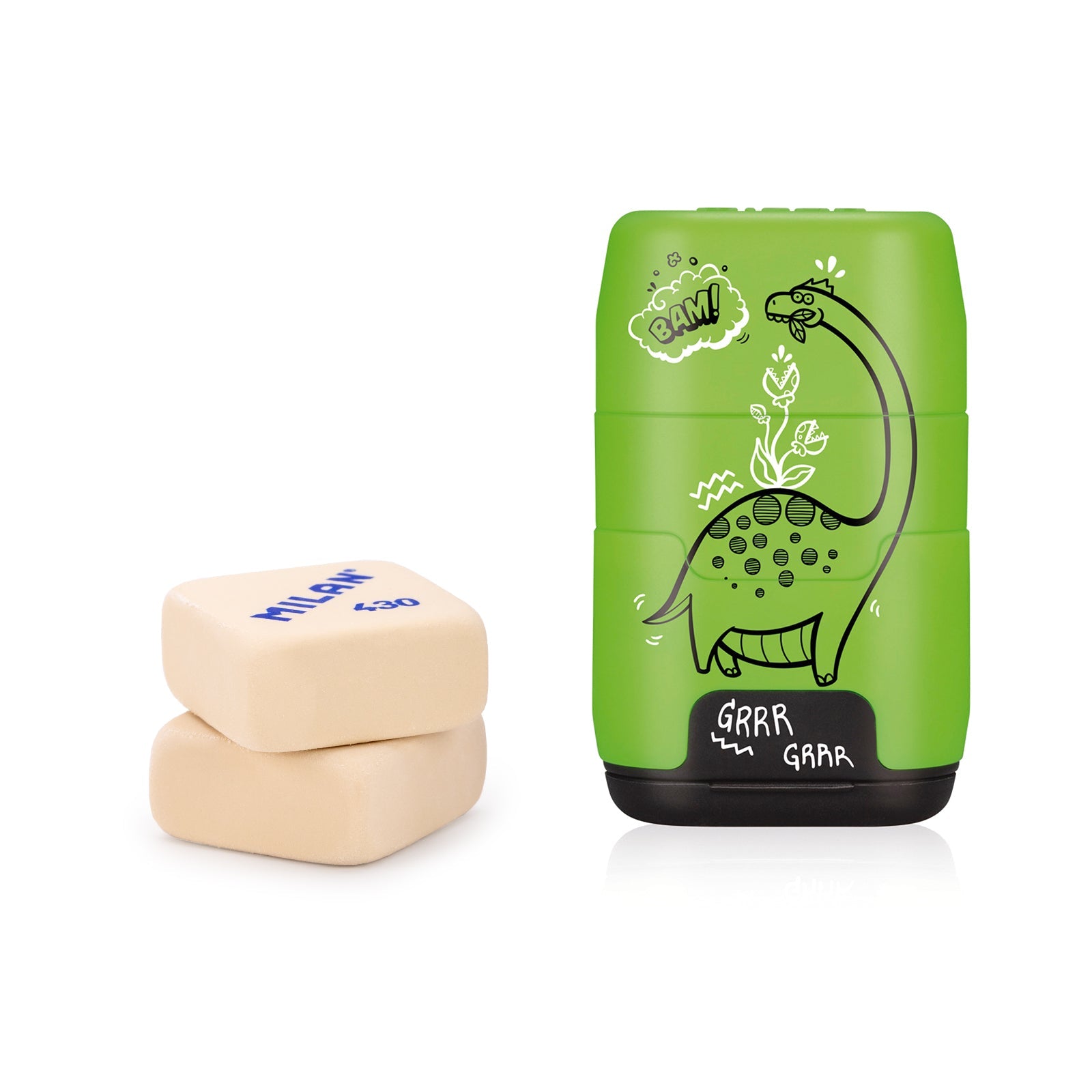 MILAN COMPACT Million Years Ago- Afilaborra Compact. Combinación de Goma y Sacapuntas Doble. Verde