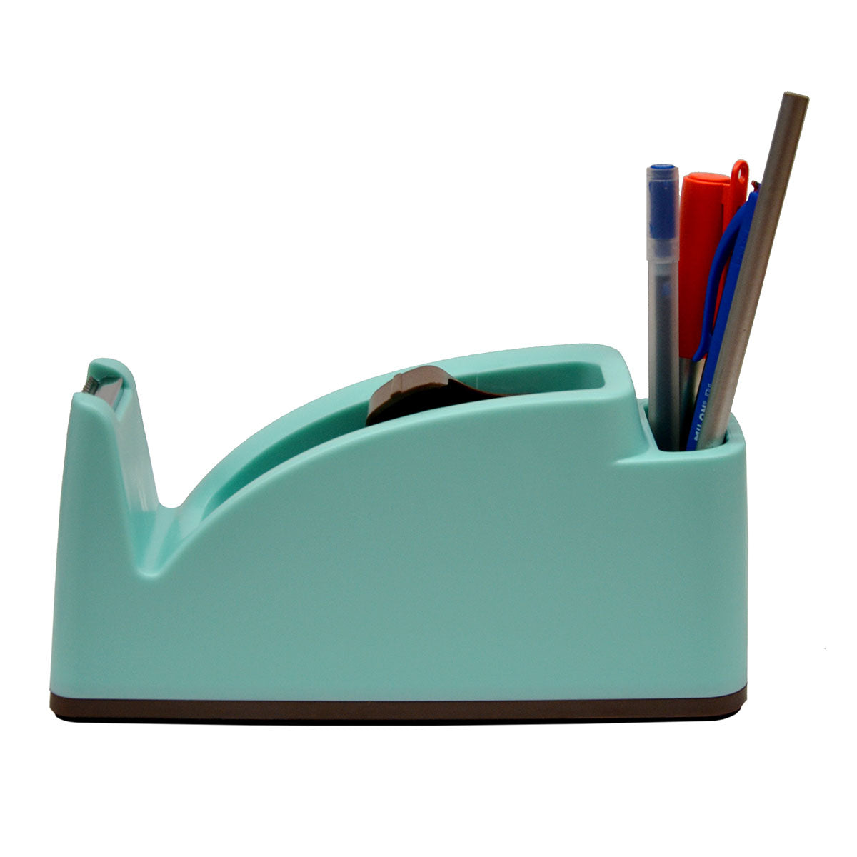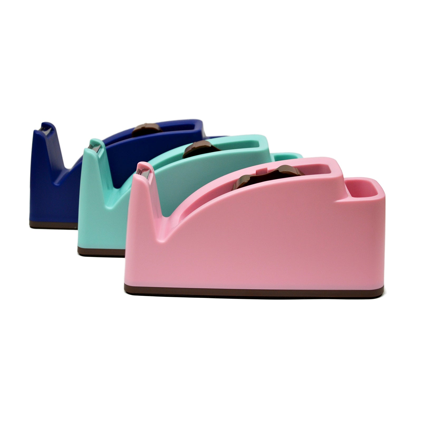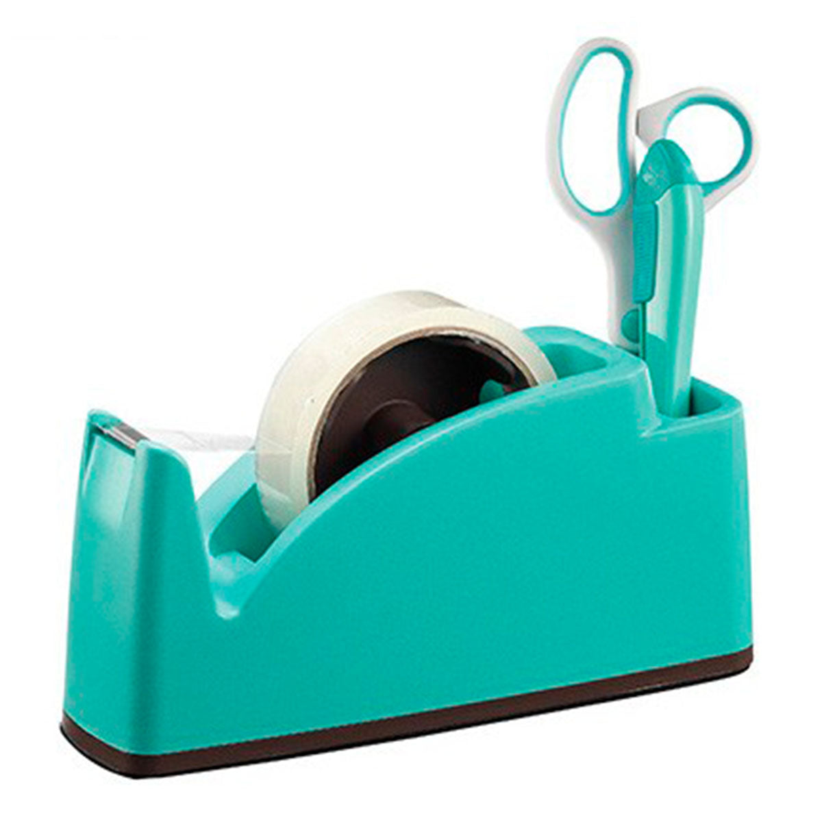 Dispensador de cinta adhesiva de sobremesa grande para asegurar que la cinta sea de fácil acceso, sencilla y rápida de reemplazar en cualquier momento. Es muy pesado para su uso con una sola mano y cuenta con base antideslizante para que no resbale al usarlo.