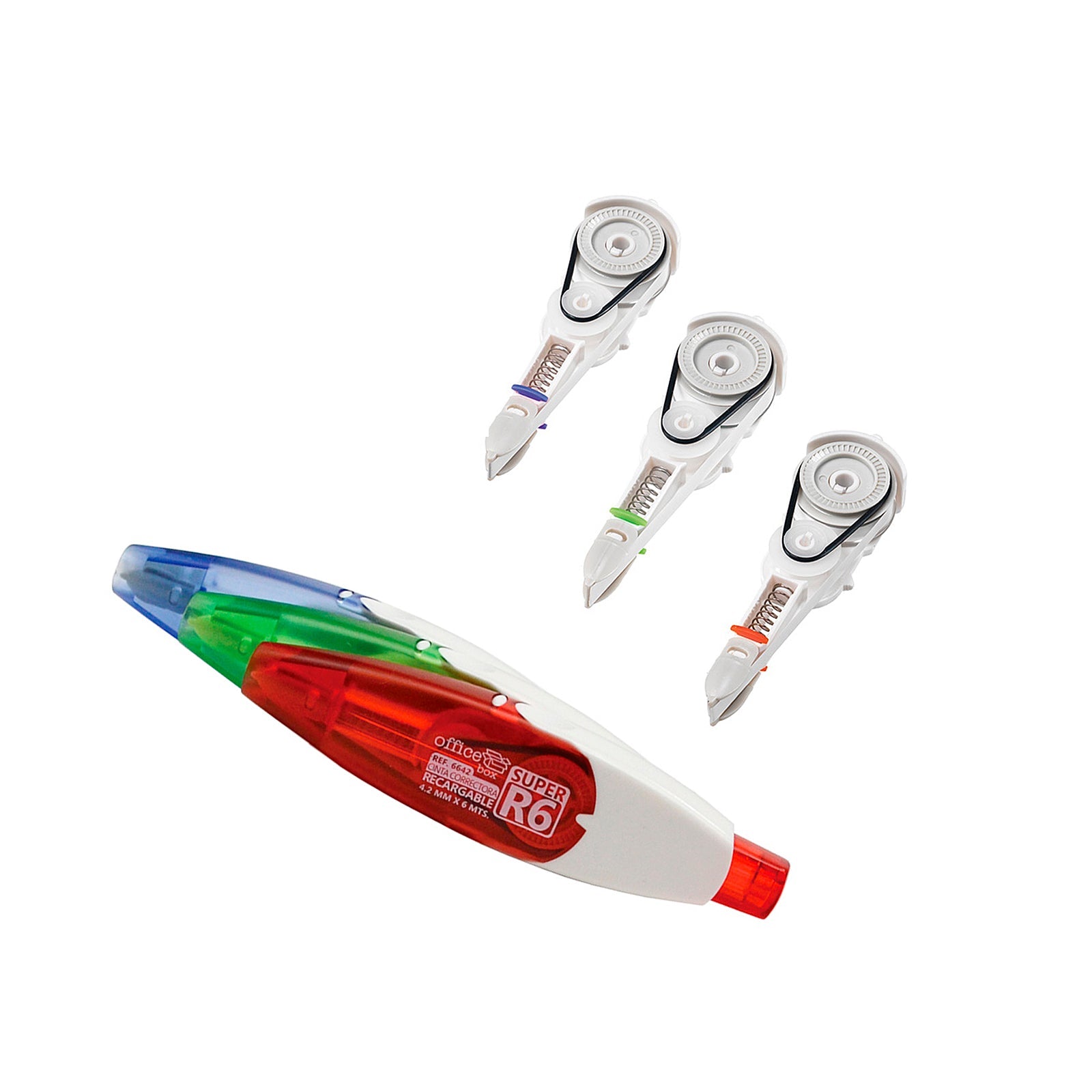 Pack de 3 recambios para cinta correctora SDI Super R6 de 4.2 mm de ancho. Es muy fácil de extraer y colocar de nuevo. Además, gracias al diseño translúcido de la cinta correctora podrás ver cuando se está terminando para substituirlo.