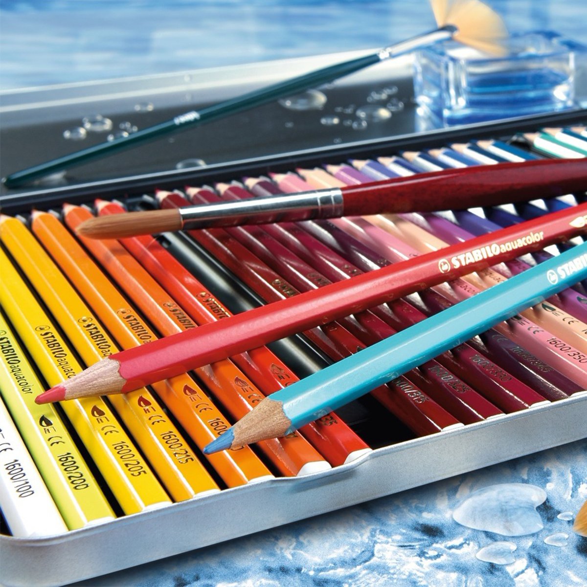 STABILO - Estuche de Metal con 24 Lápices de Colores Brillantes Acuarelables