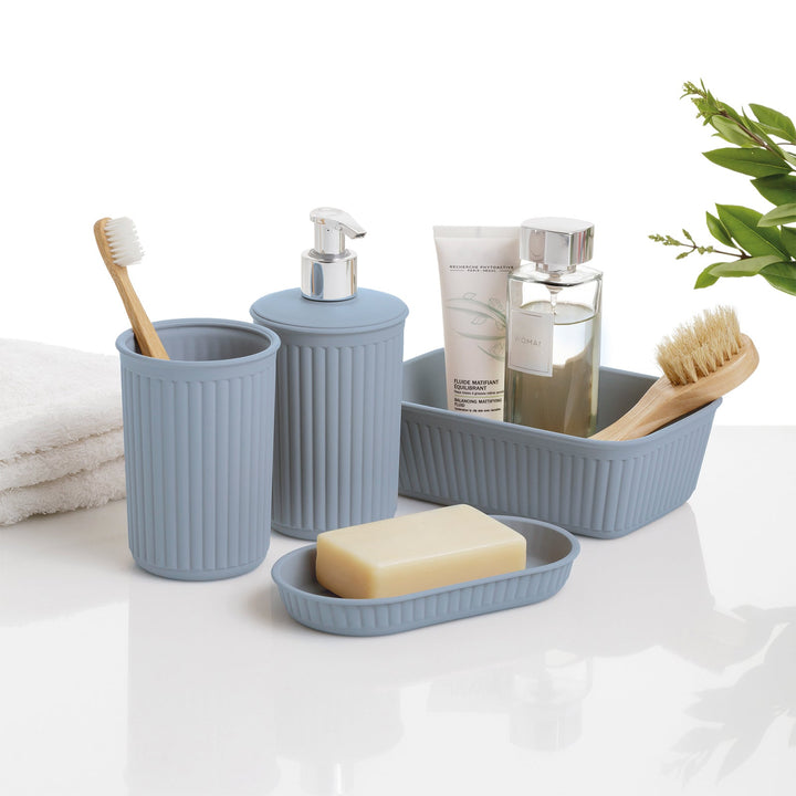 Jabonera de baño TATAY Baobab. Diseño sencillo, minimalista y moderno, con formas redondeadas y grabado vertical rayado. Colores en tonos neutros combinables con todos los estilos de tu casa. Producto fabricado en España por Tatay en PP de alta calidad libre de BPA. ¡Perfectamente combinable con cualquier estilo de baño y hogar!