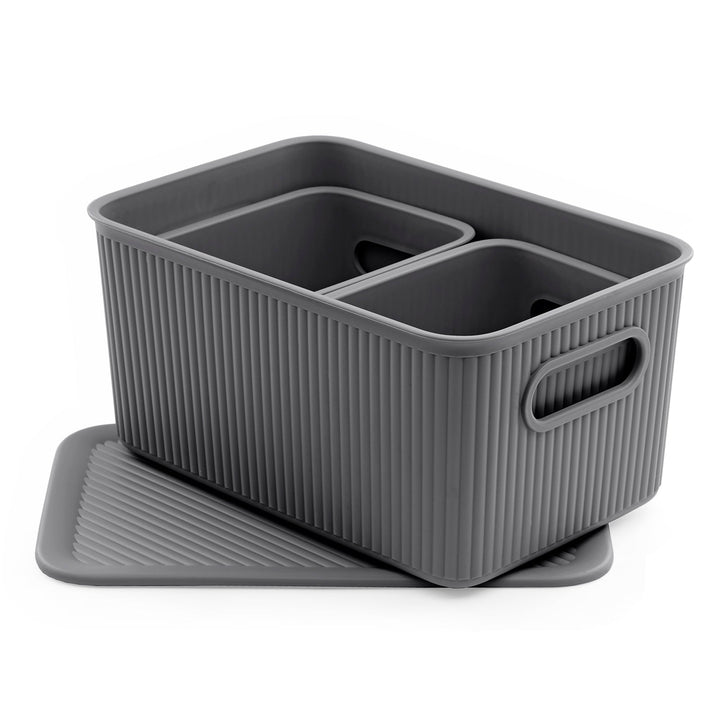 Set de 3 cajas organizadoras TATAY Baobab con tapa incluida, la solución perfecta para ordenar cualquier espacio de tu hogar. Su diseño moderno y minimalista y colores sus neutros la hacen combinable con todos los estilos de decoración.