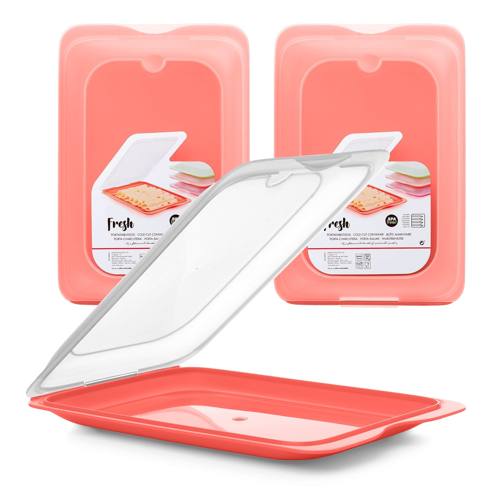 Recipiente porta embutidos TATAY con sistema Fresh para una conservación óptima de las lonchas de embutidos y quesos en tu nevera. Además, es ideal para transportar alimentos y fiambres, como el jamón cocido. Medidas: 25.2 x 17 x 3.2 cm.